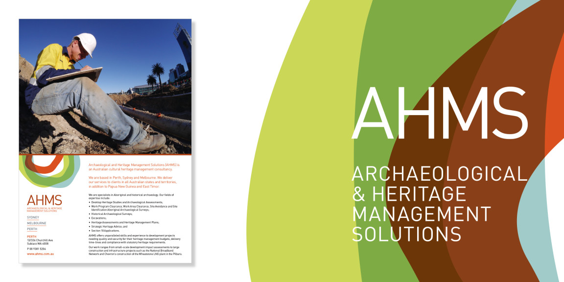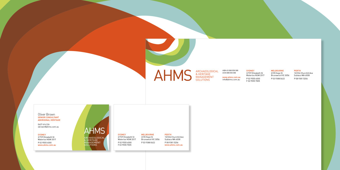 Company collateral utilises a colour scheme based on the AHMS logo and the brand graphic, depicting the earthy tones of the Australian flora. Subdued tones of Australian landscape are used as the accent and background secondary colour scheme.