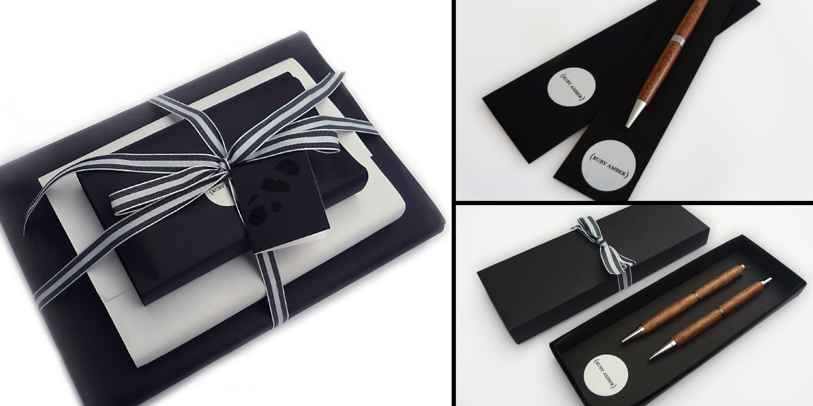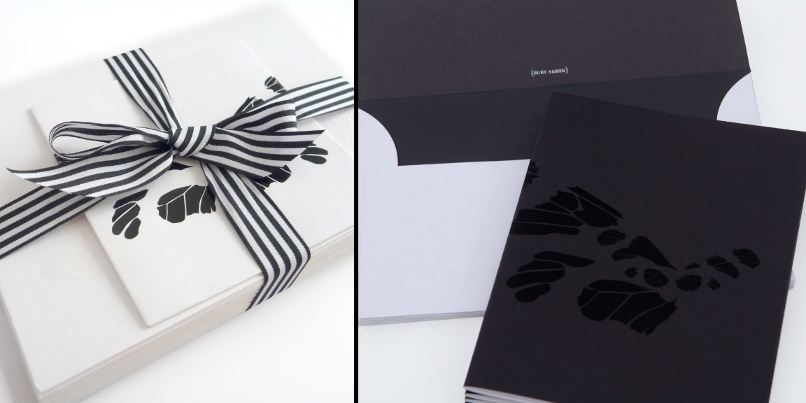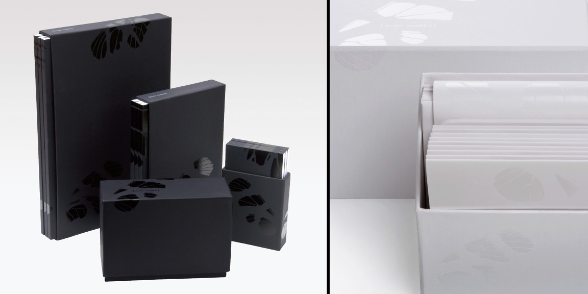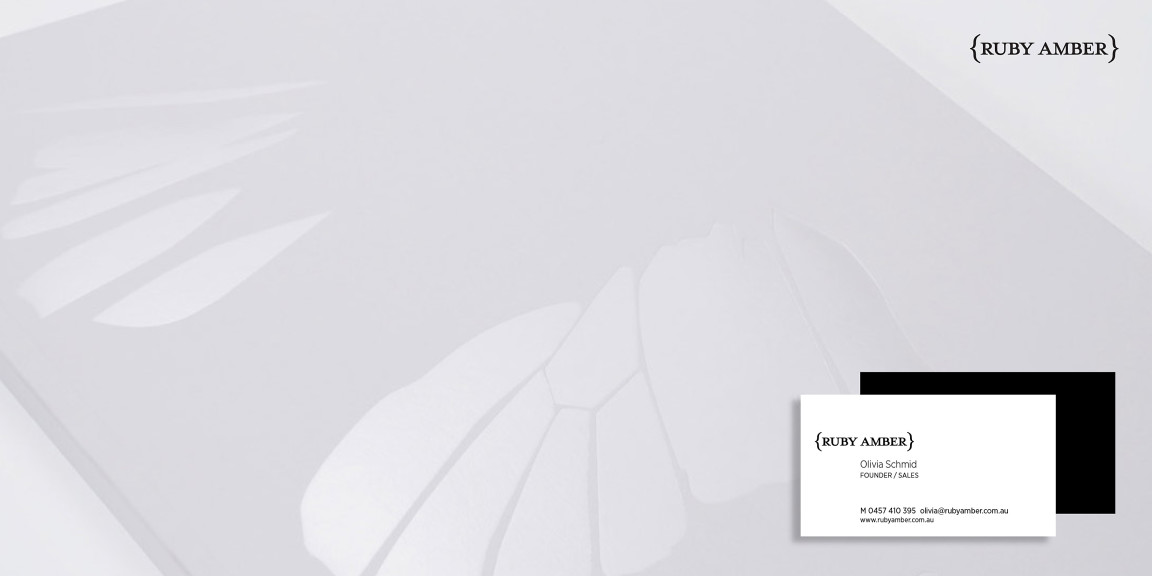Ruby Amber communication collateral is kept simple, in line with its black and white stationery range.